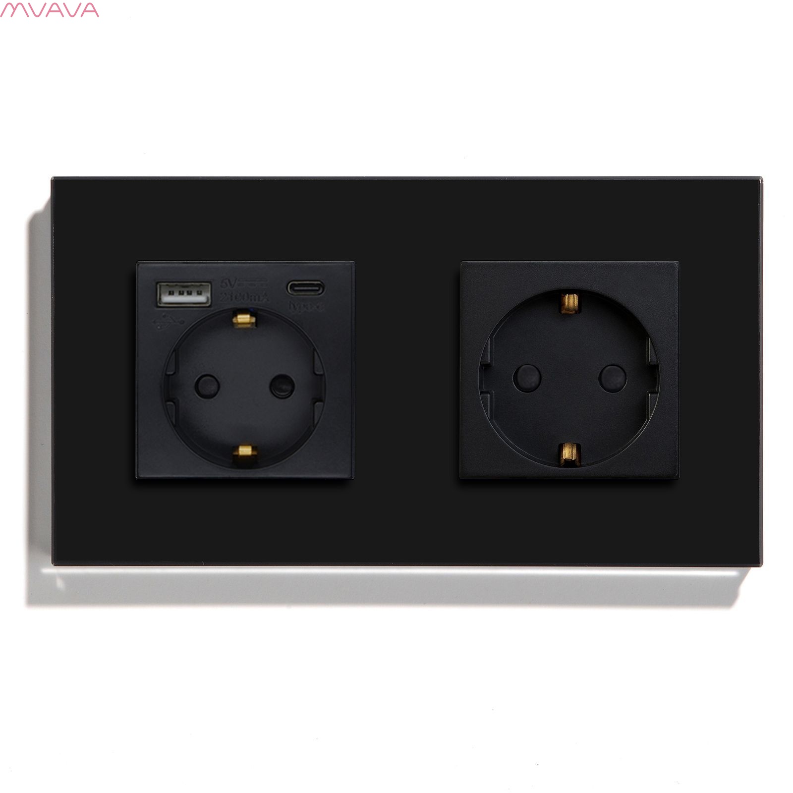 - Розетка двойная в сборе с стеклянной рамкой, это новая версия электрической розетки с USB и Type-C выходами без светодиода, не шумит(не пищит), подходит в стандартный круглый подрозетник 65-70мм, два USB 5 вольт и выходным током 2.1А, для питания и зарядки электронных устройств.
