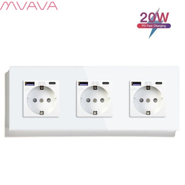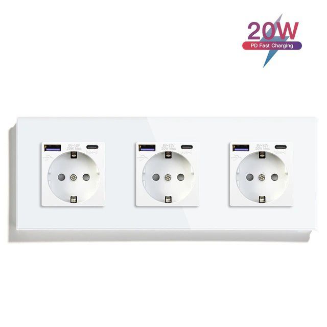Розетка электрическая 3 поста с Usb/Type-C АC, быстрая зарядка 20W, цвет белый