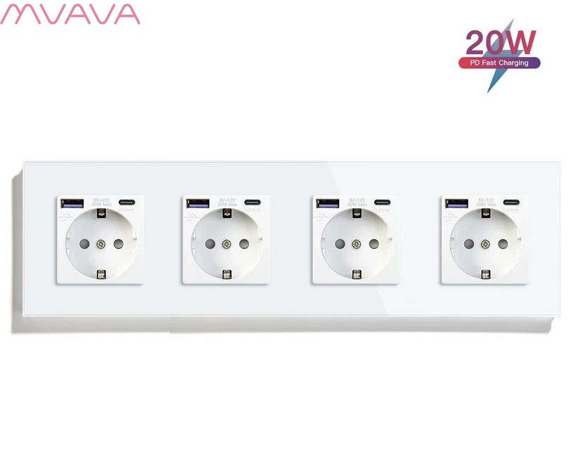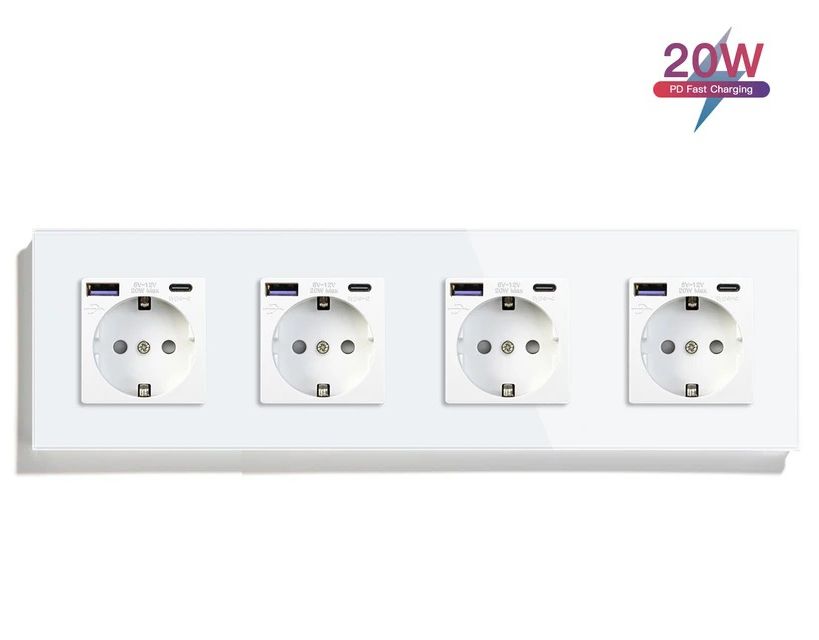 Розетка электрическая 4 поста с Usb/Type-C АC, быстрая зарядка 20W, цвет белый