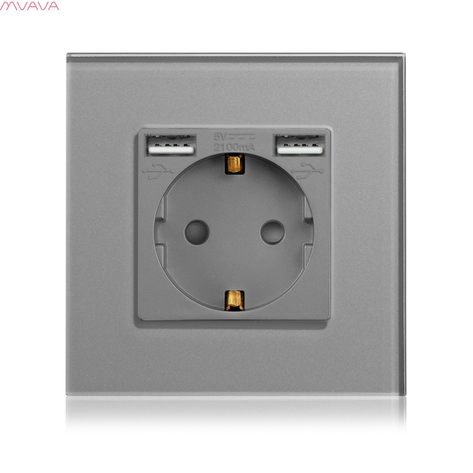 - Розетка в сборе с стеклянной рамкой, это новая версия электрической розетки с USB без светодиода, не шумит(не пищит), подходит в стандартный круглый подрозетник 65-70мм, два USB 5 вольт и выходным током 2.1А, для питания и зарядки электронных устройств.