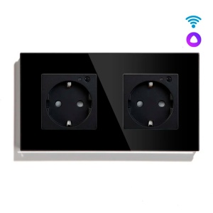 Розетка Wi-fi 2 поста, 16А рамка стекло 86х86мм цвет черный