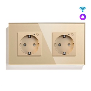 Розетка Wi-fi 2 поста, 16А рамка стекло 86х86мм цвет золото