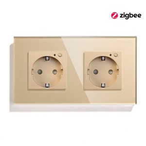 Розетка ZigBee 2 поста, 16А рамка стекло 86х86мм цвет золотой
