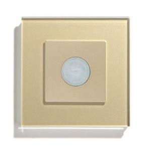 Датчик движения в разрыв фазы, радиус 8 м рамка стекло 86х86мм цвет золотой