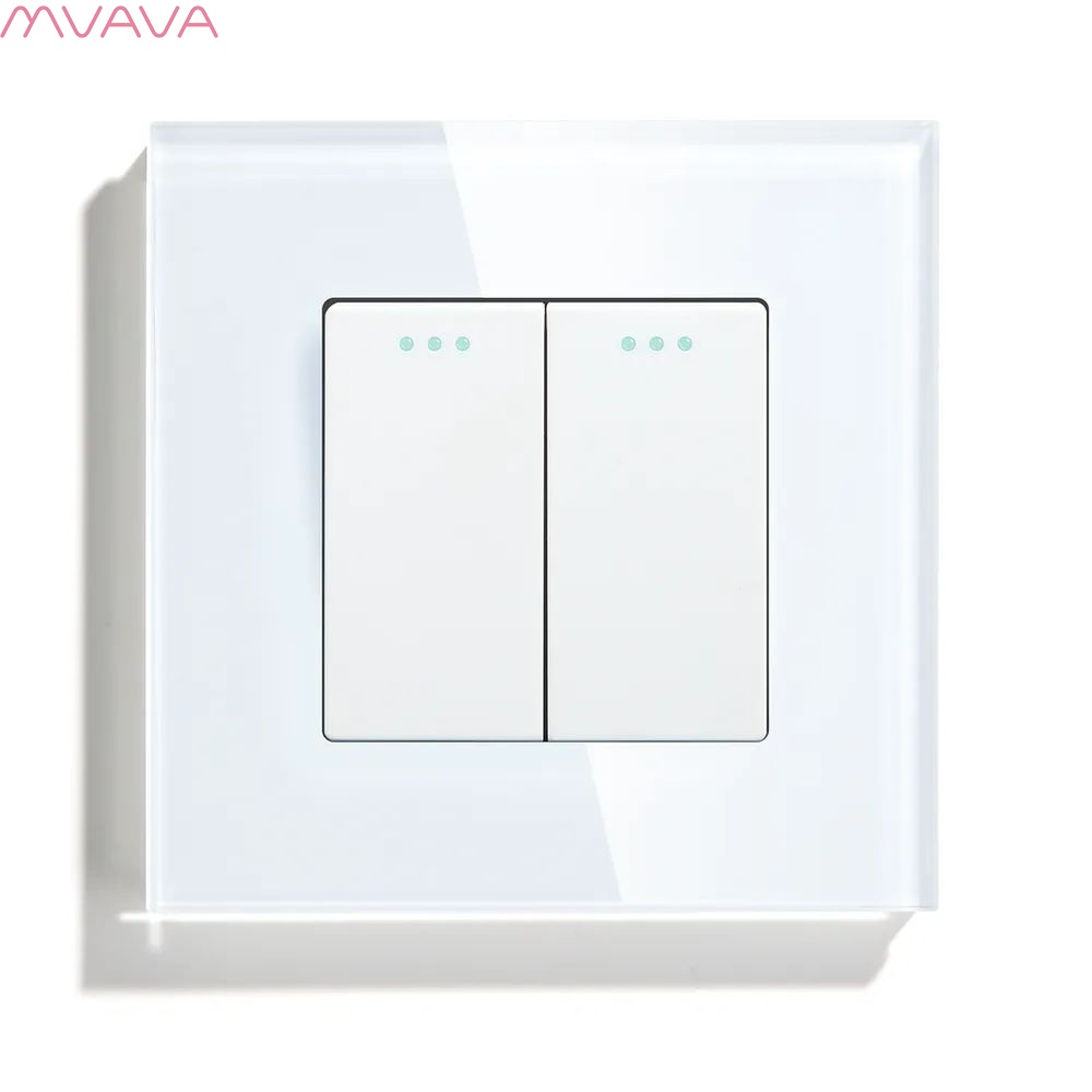 Выключатель перекрестный 2 клавиши, 1 пост, рамка стекло, цвет белый