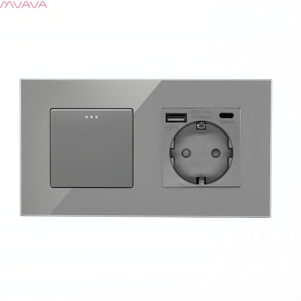 Выключатель с розеткой, 1 клавиша 1 розетка с usb type-c, 2 поста (М1+1FAC) рамка стекло 157х86мм цвет серый