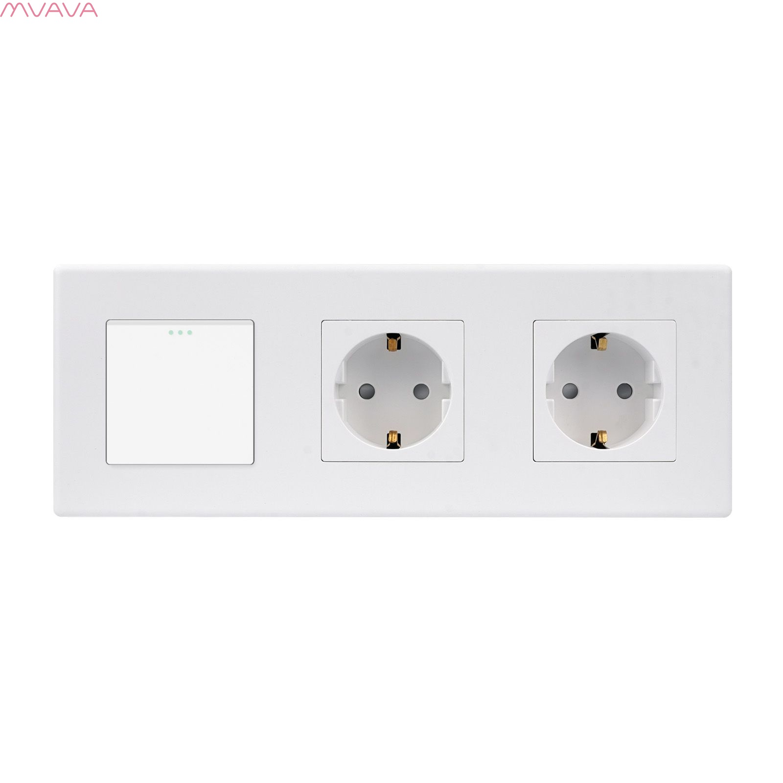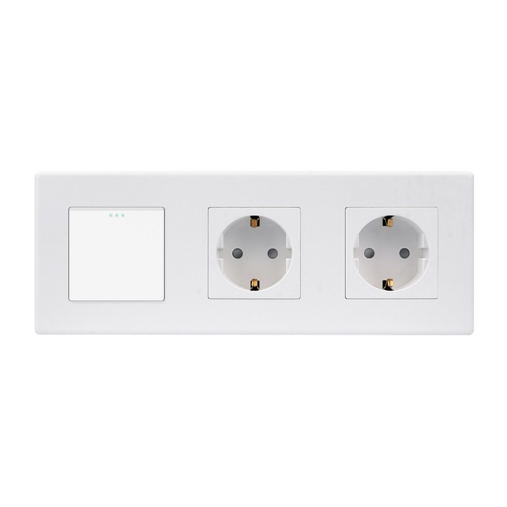 Выключатель с розеткой, 1 клавиша 2 розетки, 3 поста (M1+2F) рамка пластик 228х86мм цвет белый