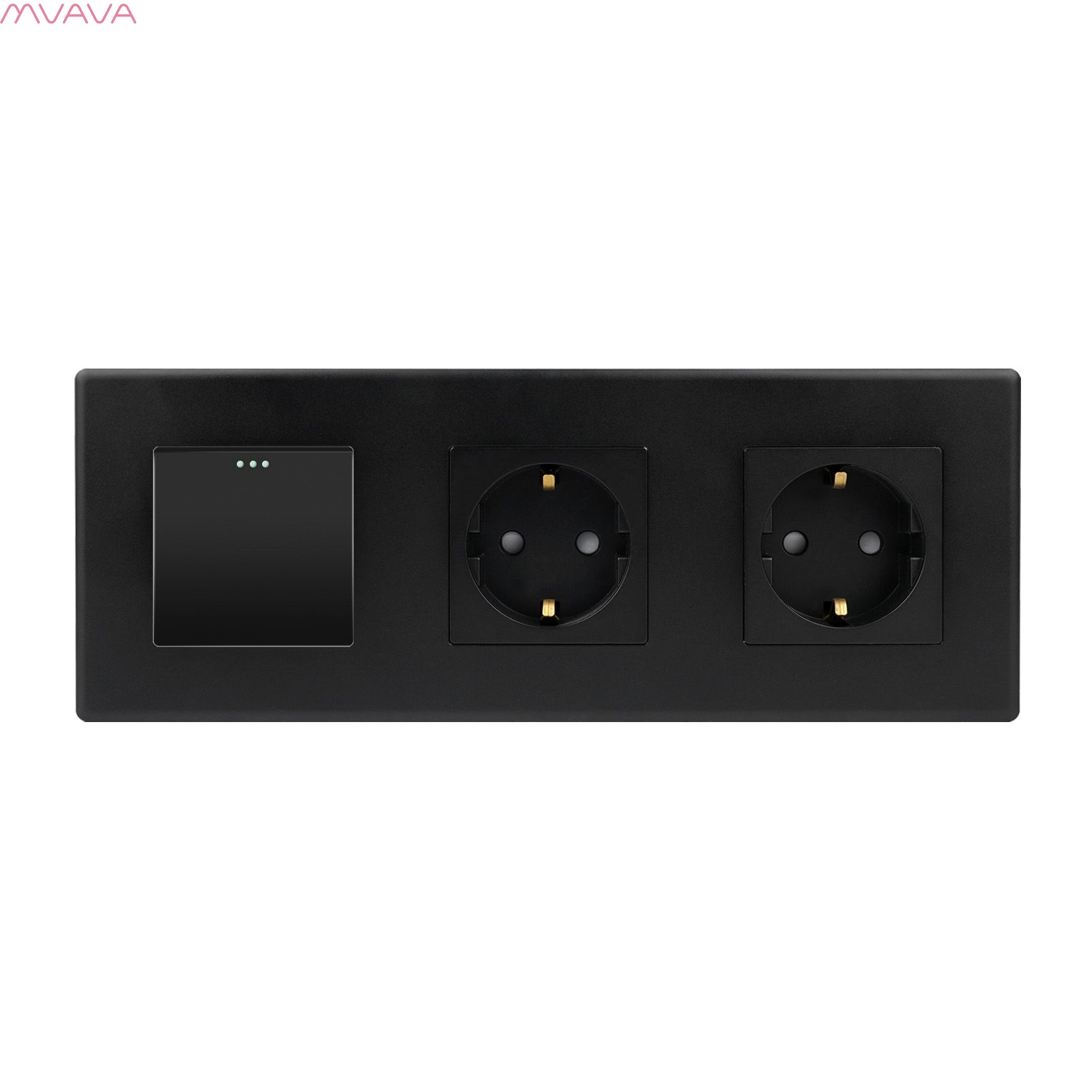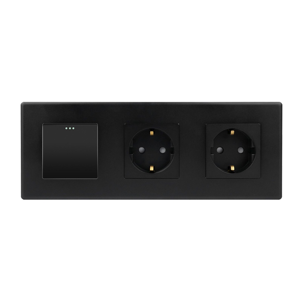 Выключатель с розеткой, 1 клавиша 2 розетки, 3 поста (M1+2F) рамка пластик 228х86мм цвет черный
