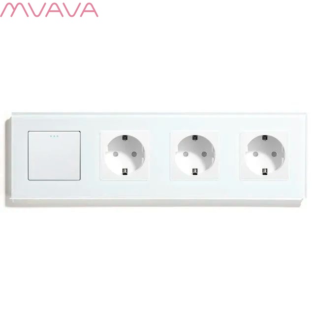 Выключатель с розеткой, 1 клавиша 3 розетки, 4 поста (M1+3F) рамка стекло 299х86мм цвет белый