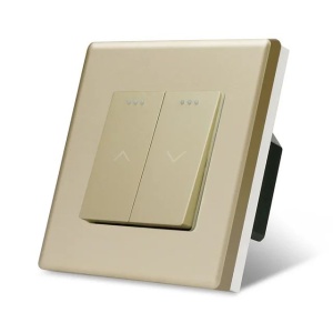 Выключатель механический для жалюзи, 2 клавиши 1 пост, рамка пластик 86х86мм цвет золотой