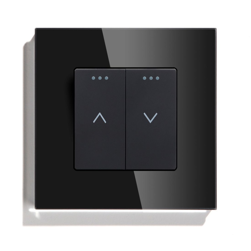 Выключатель механический для жалюзи, 2 клавиши 1 пост, рамка стекло 86х86мм цвет черный