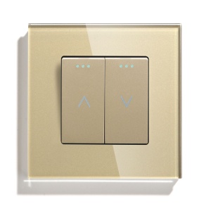 Выключатель механический для жалюзи, 2 клавиши 1 пост, рамка стекло 86х86мм цвет золотой