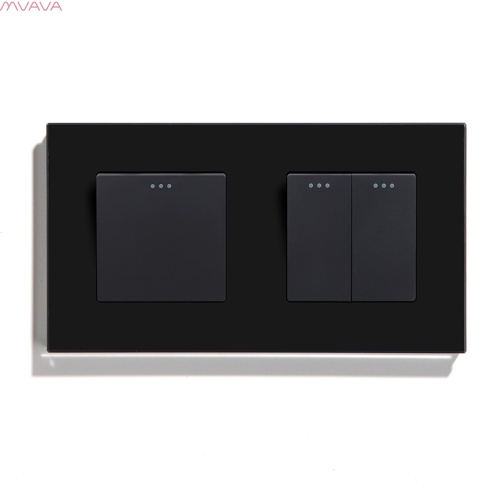 Выключатель механический 3 клавиши 2 поста (М1+М2) рамка стекло 157х86мм цвет черный