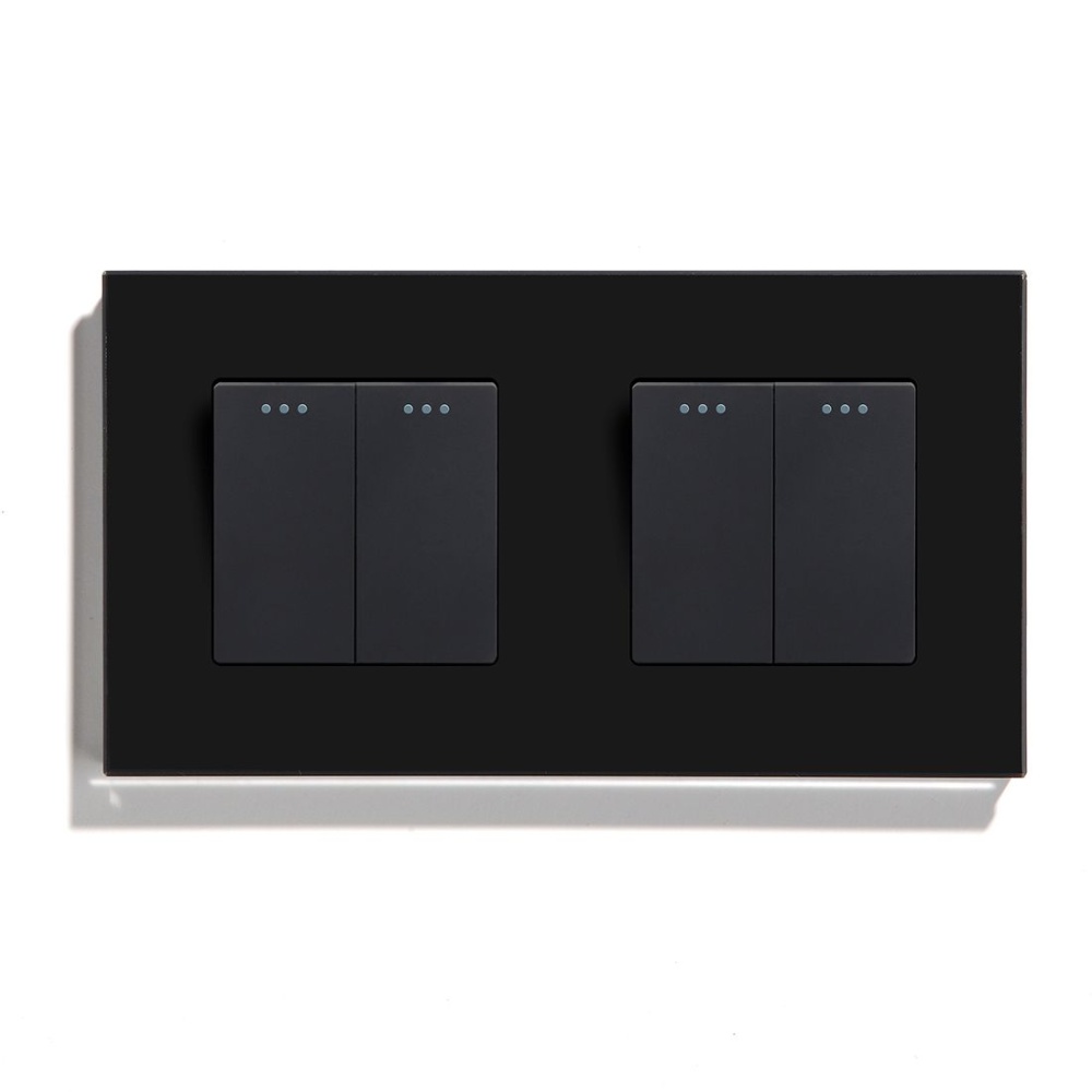 Выключатель механический 4 клавиши 2 поста (М2+М2) рамка стекло 157х86мм цвет черный