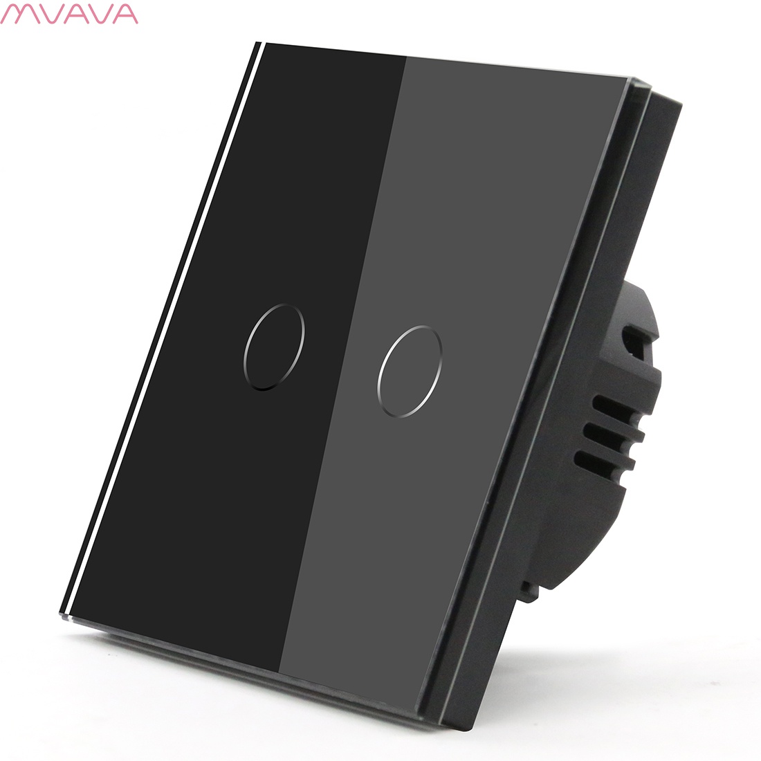 Сенсорный выключатель проходной (переключатель) 2 клавиши, панель стекло Черный