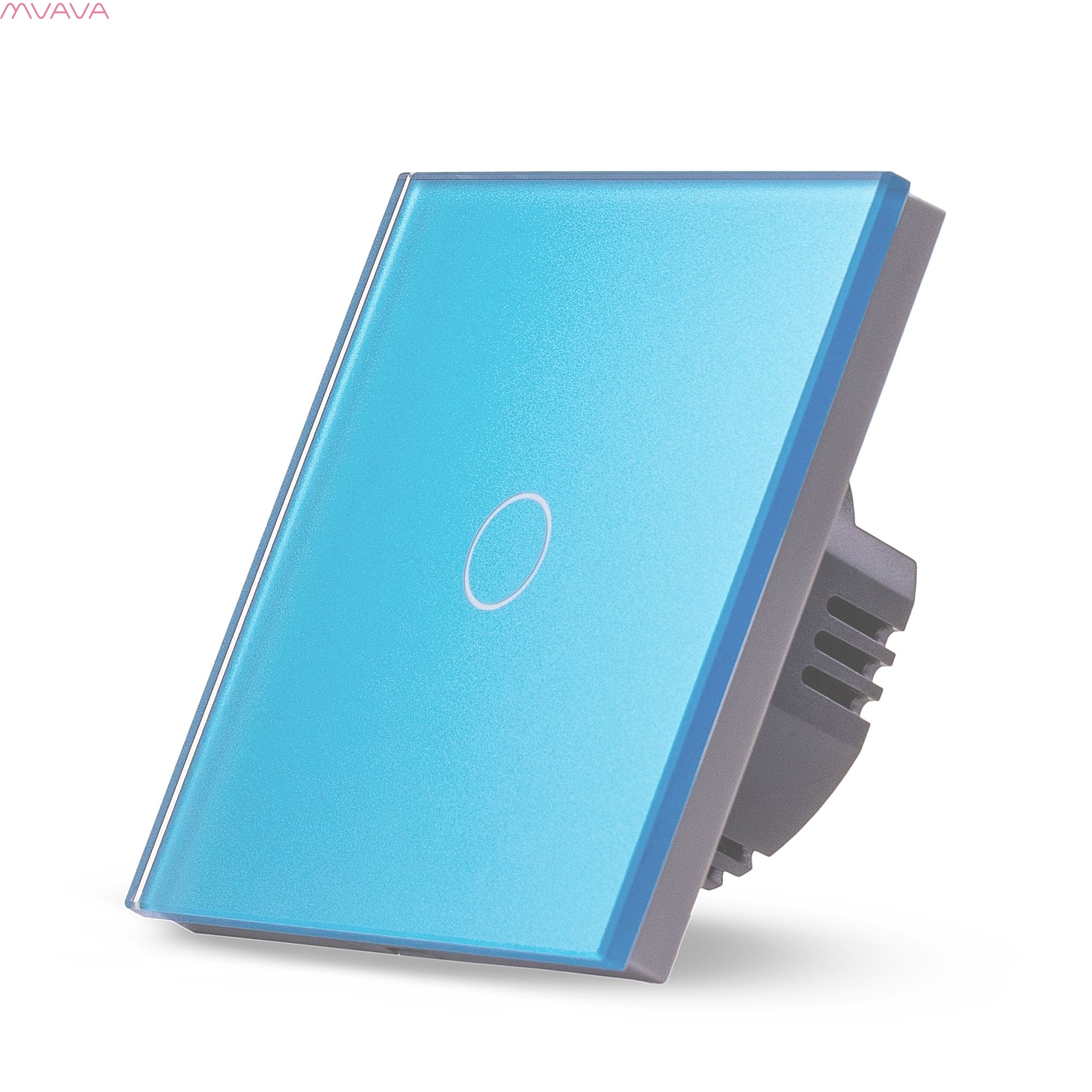 Сенсорный выключатель 1 клавиша 1 пост, (1G) стекло 86х86мм цвет голубой