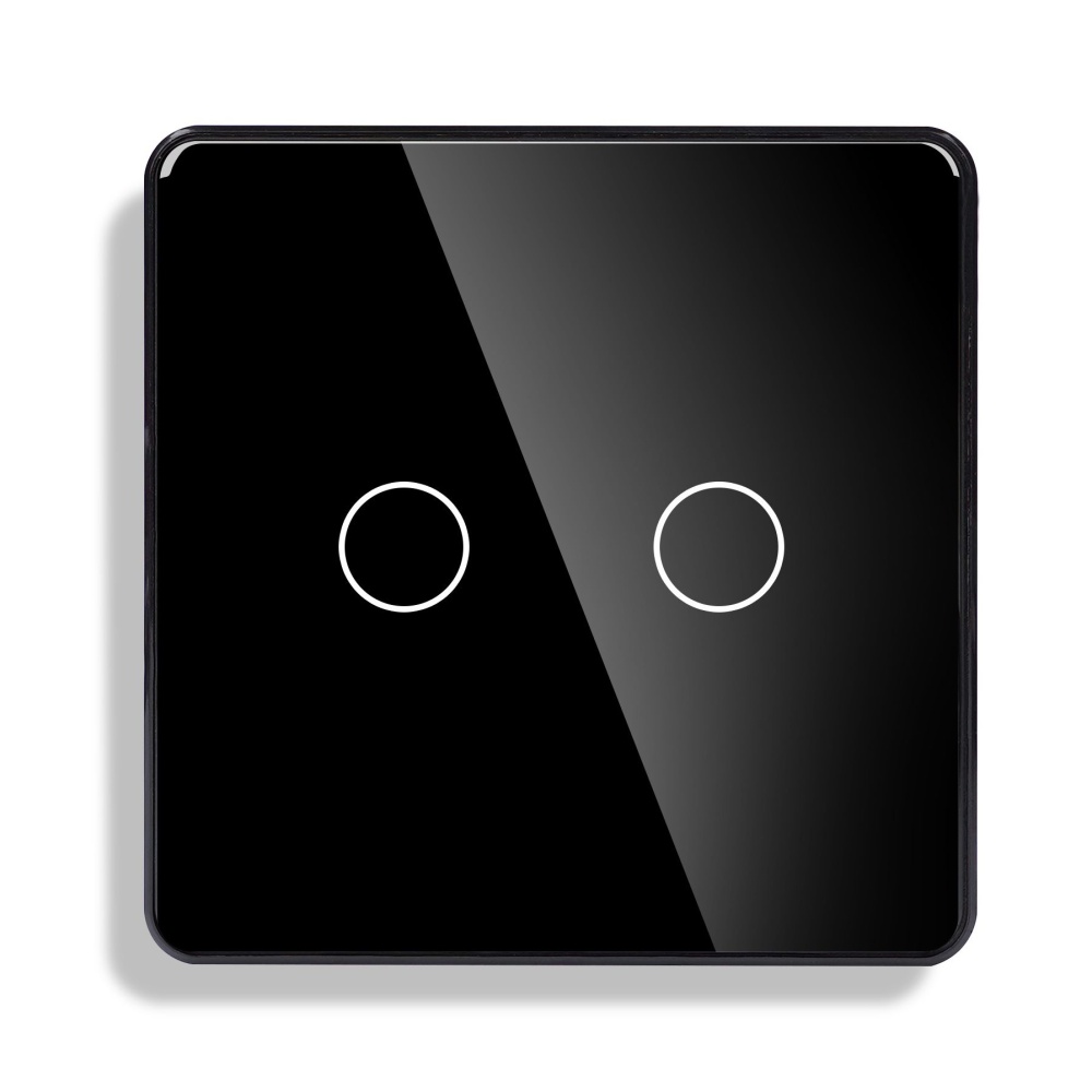 Сенсорный выключатель 2 клавиши 1 пост, (2G) стекло 2.5D 86х86мм цвет черный