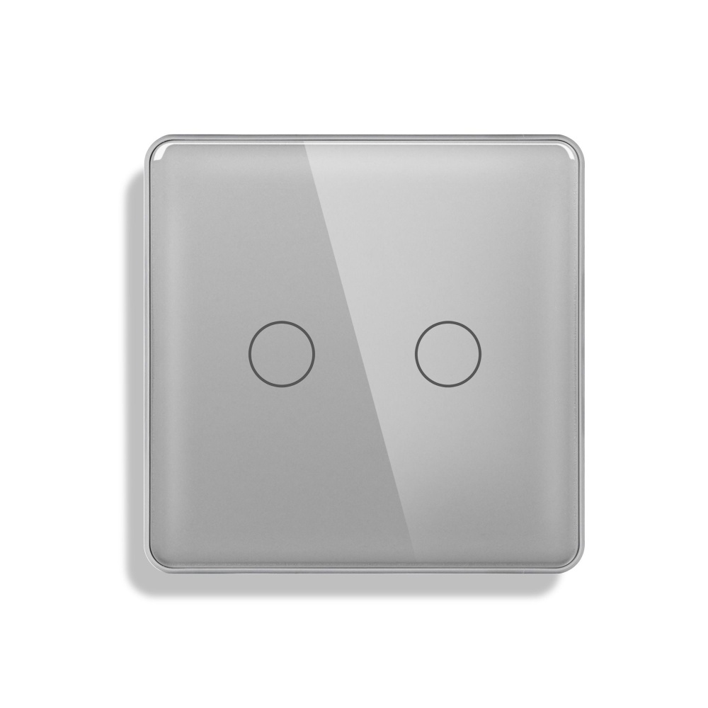 Сенсорный выключатель 2 клавиши 1 пост, (2G) стекло 2.5D 86х86мм цвет серый