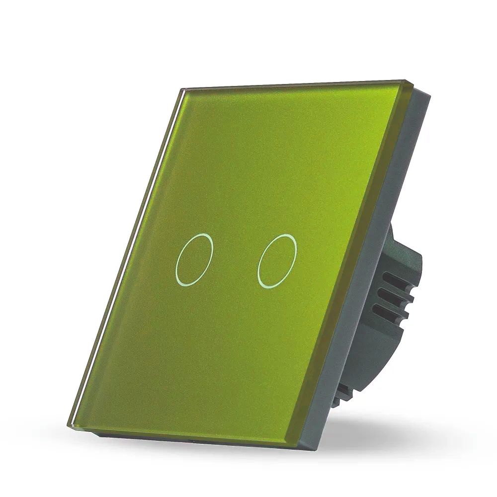 Сенсорный выключатель 2 клавиши 1 пост, (2G) стекло 86х86мм цвет аквамарин