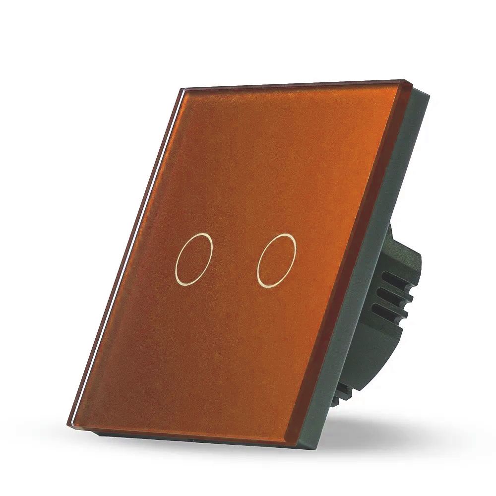 Сенсорный выключатель 2 клавиши 1 пост, (2G) стекло 86х86мм цвет оранжевый