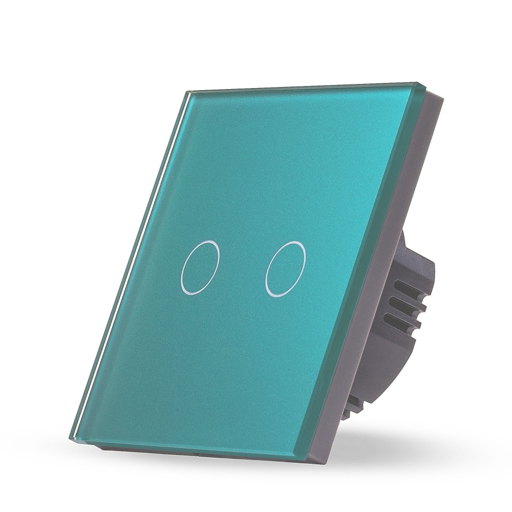Сенсорный выключатель 2 клавиши 1 пост, (2G) стекло 86х86мм цвет зеленый