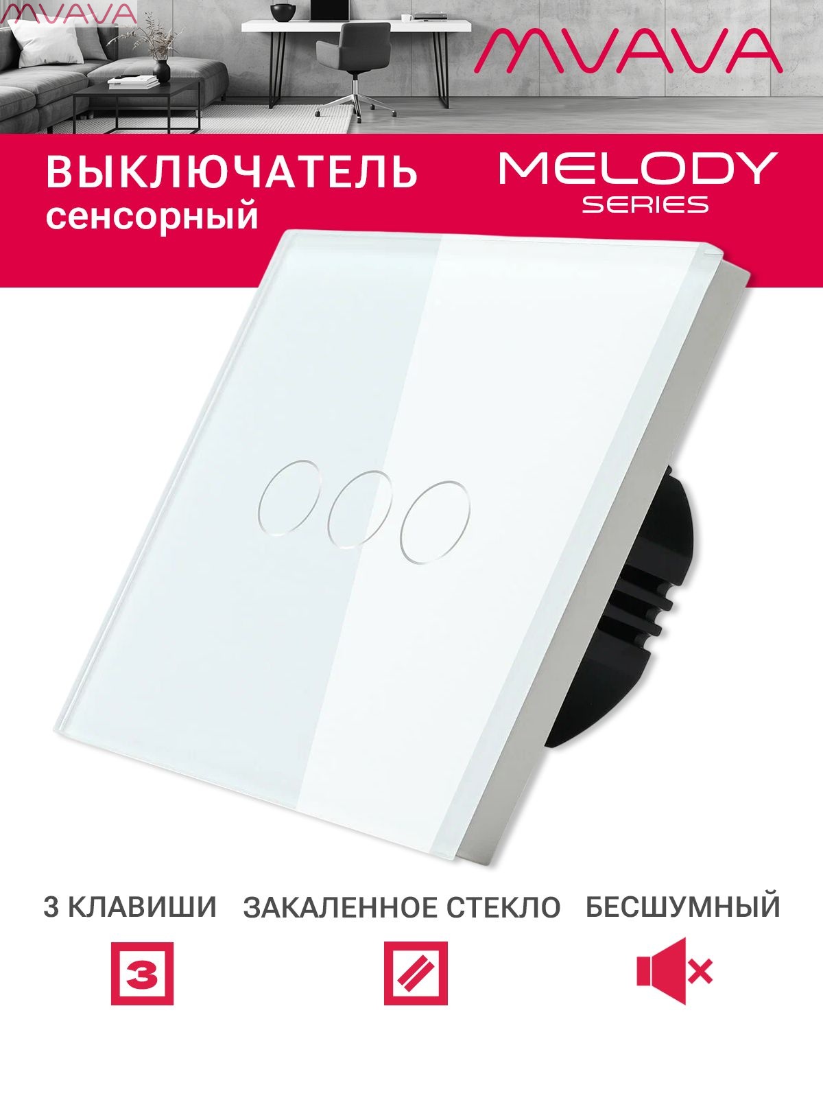 Сенсорный выключатель 3 клавиши 1 пост, (3G) стекло 86х86мм цвет белый