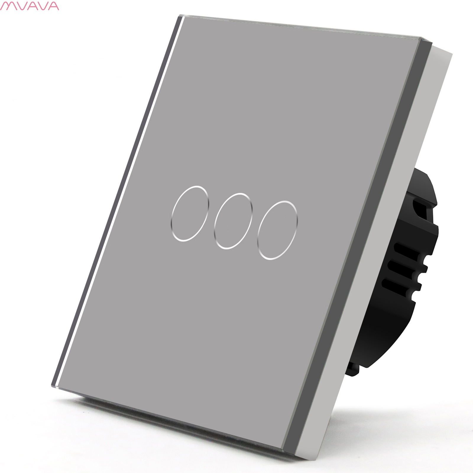 Сенсорный выключатель 3 клавиши 1 пост, (3G) стекло 86х86мм цвет серый