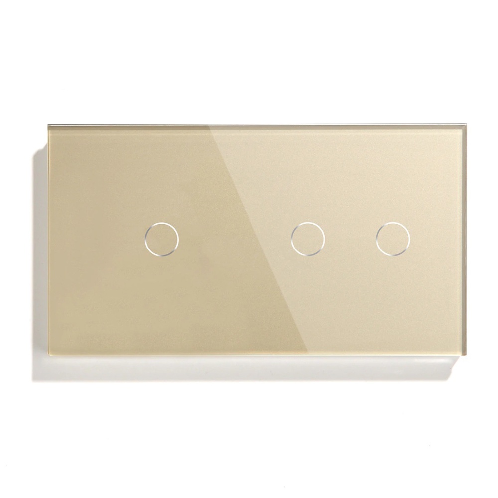 Сенсорный выключатель 3 клавиши, 2 поста (1G+2G) стекло 157х86мм цвет золотой