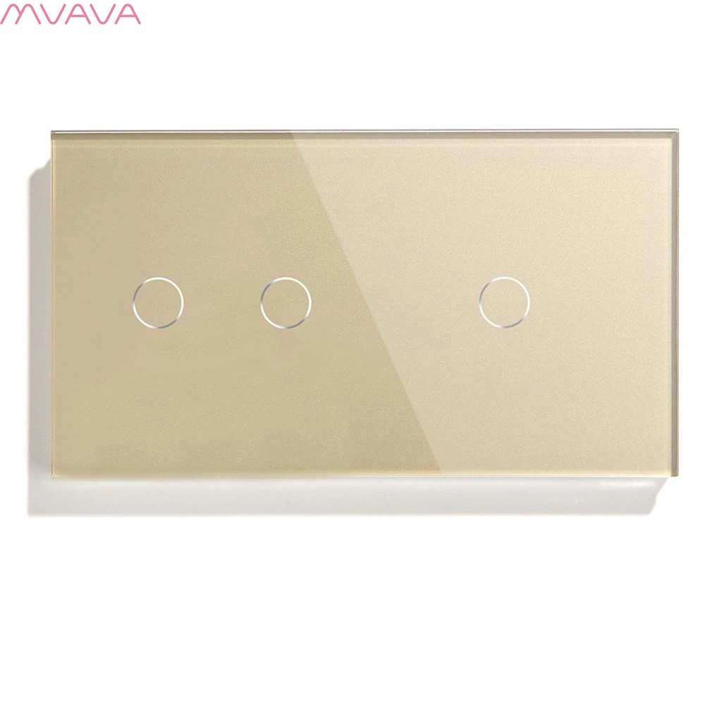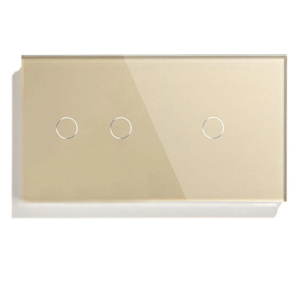 Сенсорный выключатель 3 клавиши, 2 поста (2G+1G) стекло 157х86мм цвет золотой