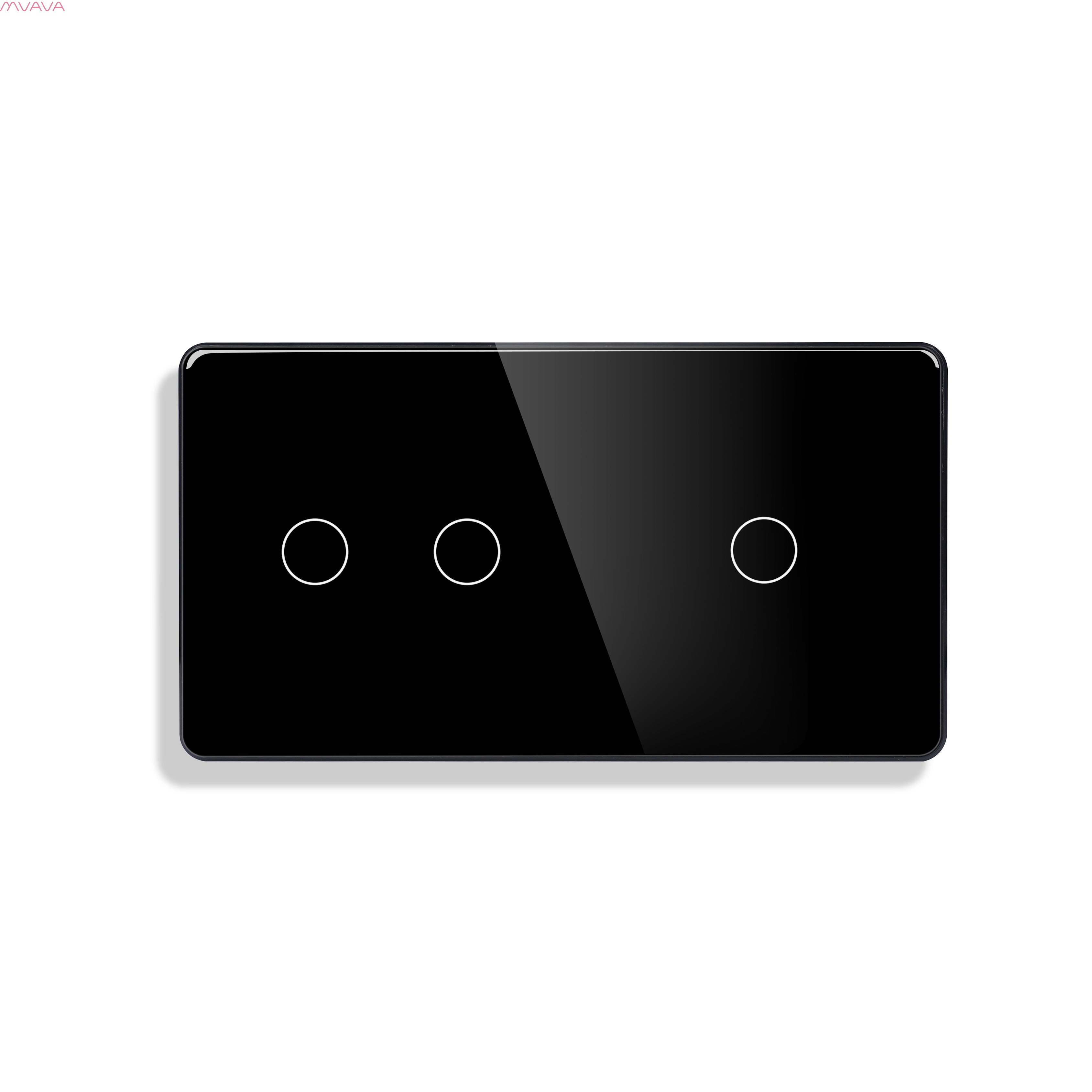 Сенсорный выключатель 3 клавиши, 2 поста (2G+1G) стекло 2.5D 157х86мм цвет черный
