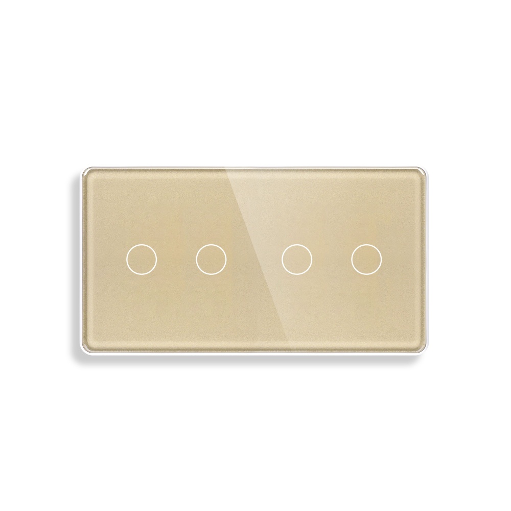 Сенсорный выключатель 4 клавиши, 2 поста (2G+2G) стекло 2.5D 157х86мм цвет золотой