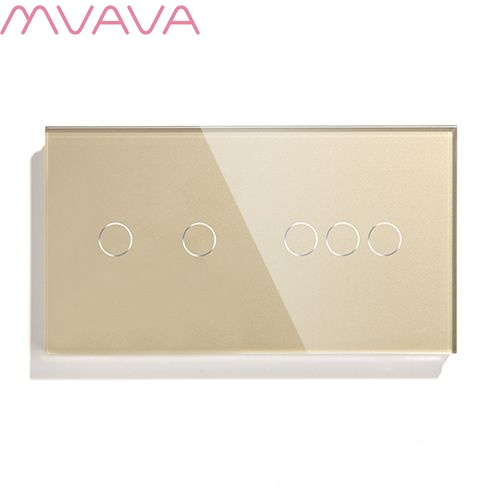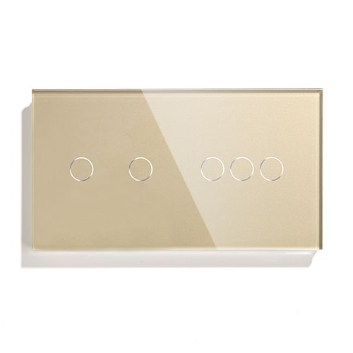 Сенсорный выключатель 5 клавиш, 2 поста (2G+3G) стекло 157х86мм цвет золотой
