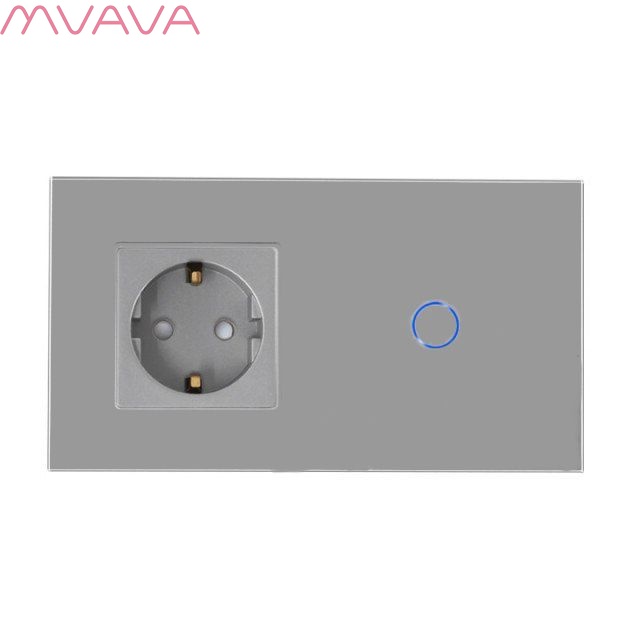 Сенсорный выключатель с розеткой 1 розетка 1кл. 2 поста (1EU+1G) стекло 157х86мм цвет серый