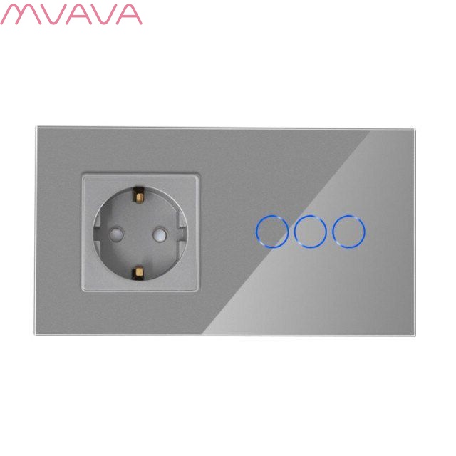 Сенсорный выключатель с розеткой 1 розетка 3кл. 2 поста (1EU+3G) стекло 157х86мм цвет серый