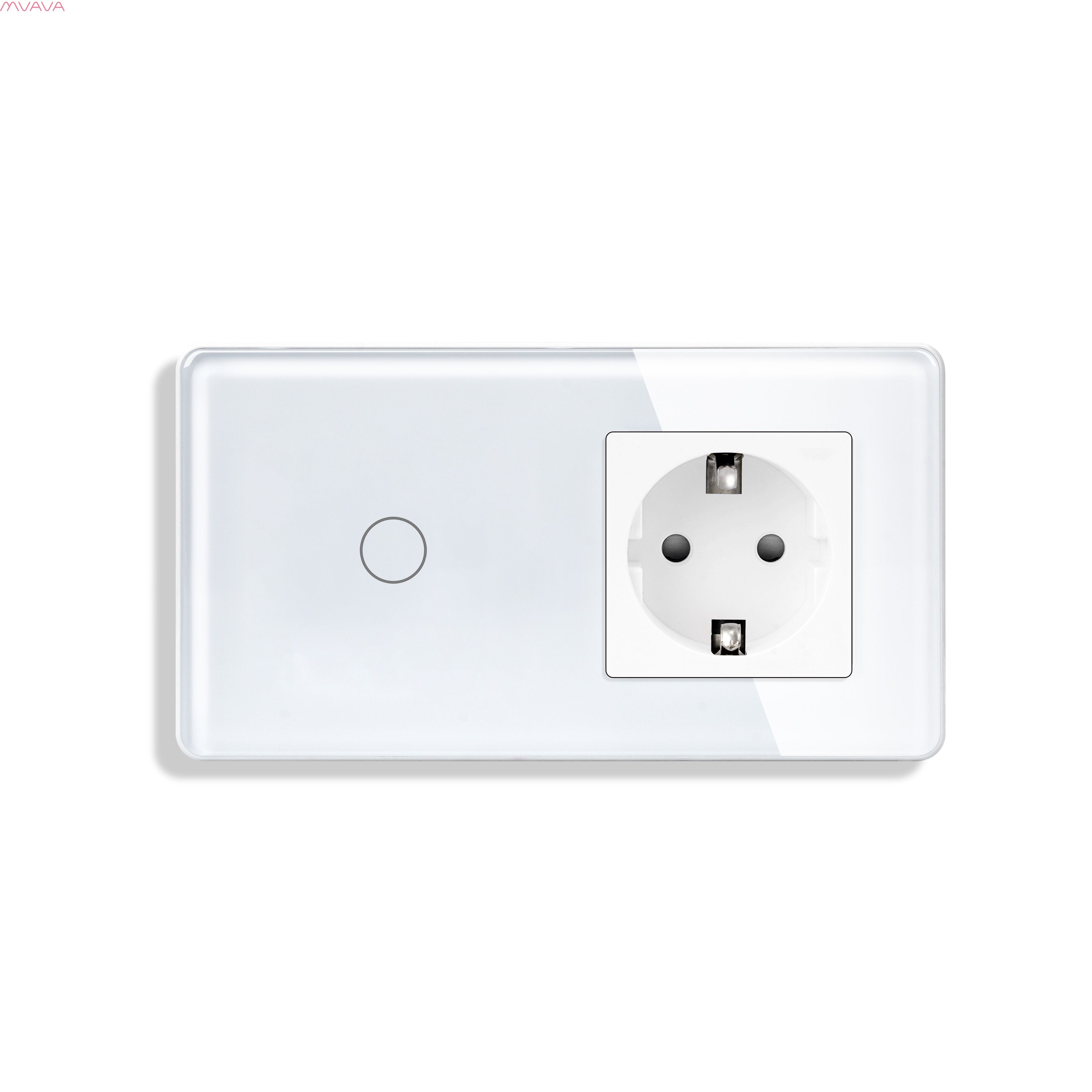Сенсорный выключатель с розеткой 1кл. 1 розетка, 2 поста (1G+1EU) стекло 2.5D 157х86мм цвет белый