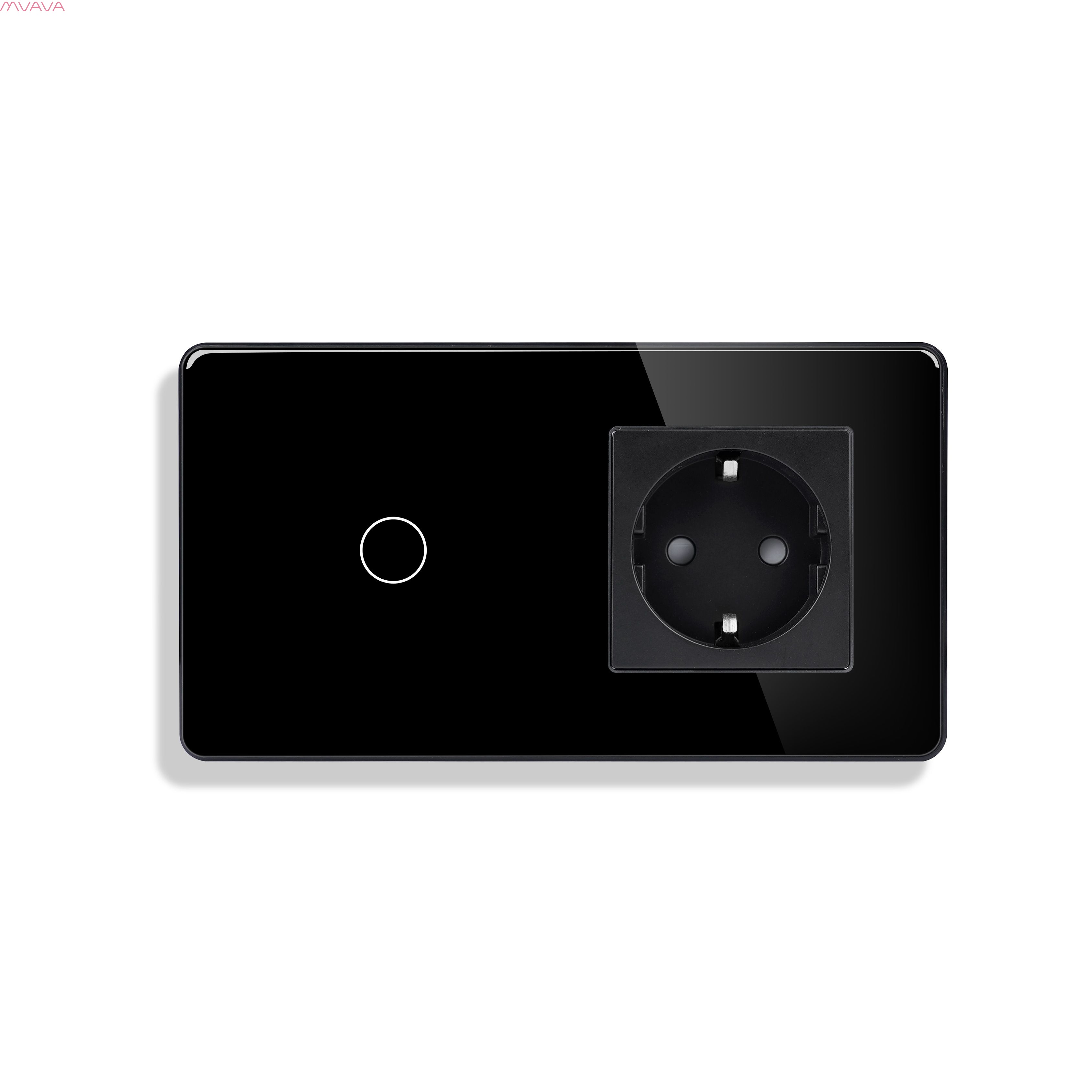 Сенсорный выключатель с розеткой 1кл. 1 розетка, 2 поста (1G+1EU) стекло 2.5D 157х86мм цвет черный