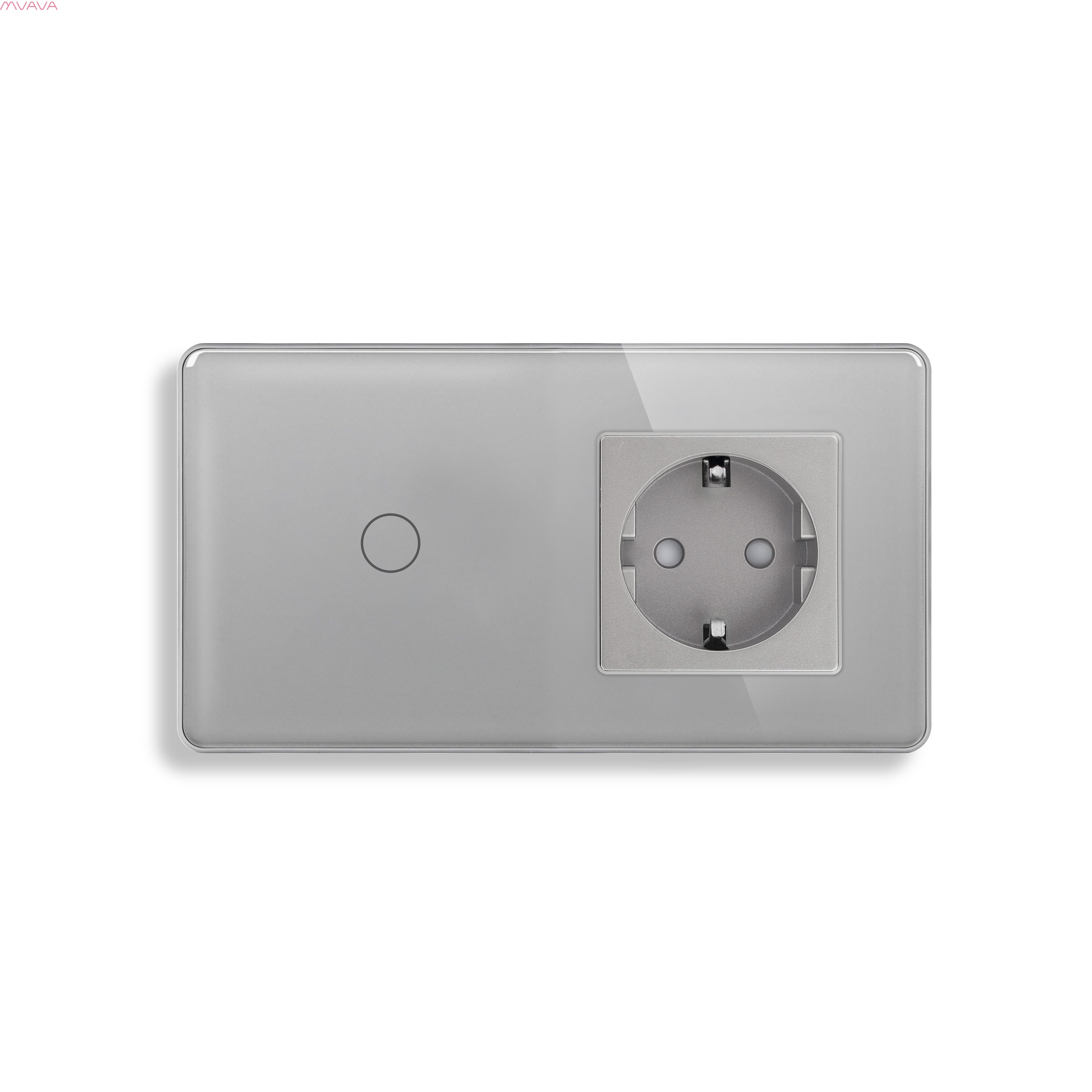 Сенсорный выключатель с розеткой 1кл. 1 розетка, 2 поста (1G+1EU) стекло 2.5D 157х86мм цвет серый
