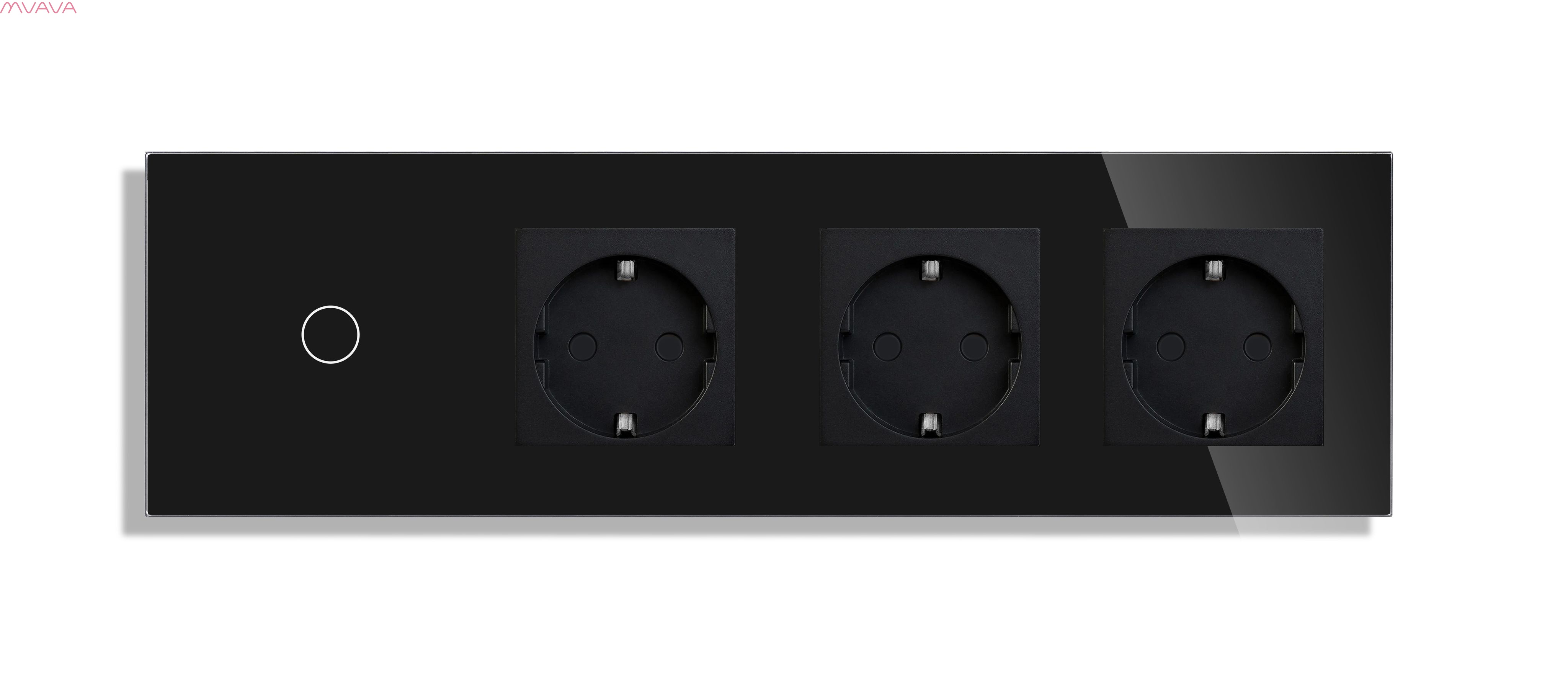 Сенсорный выключатель с розеткой 1кл. 3 розетки, 3 поста (1G+3EU) стекло 2.5D299х86мм цвет черный