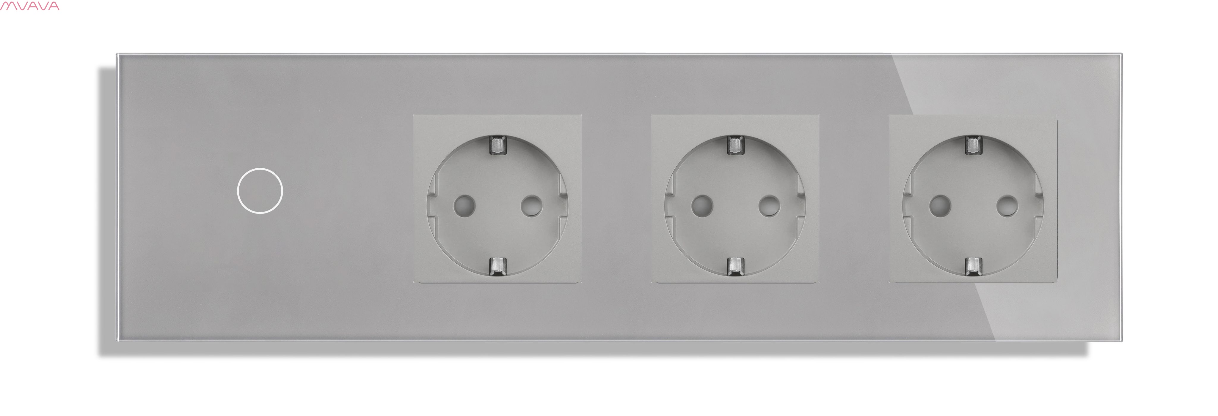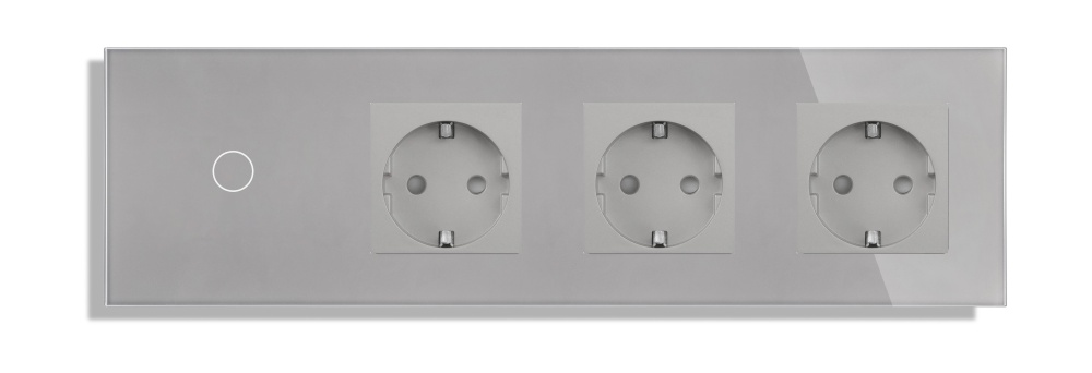 Сенсорный выключатель с розеткой 1кл. 3 розетки, 3 поста (1G+3EU) стекло 2.5D299х86мм цвет серый