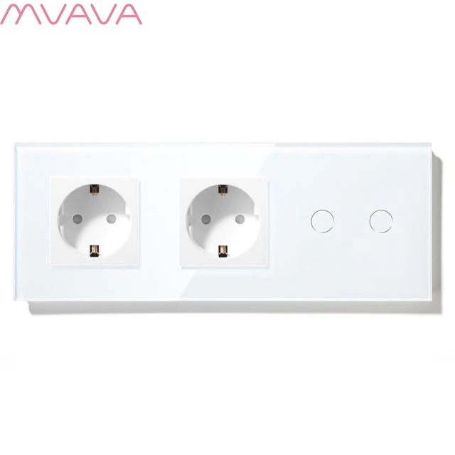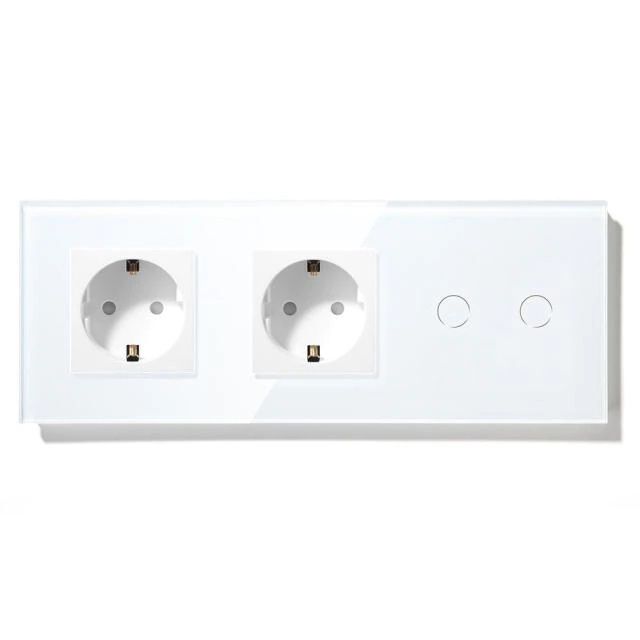 Сенсорный выключатель с розеткой 2 розетки 2кл. 3 поста (2EU+2G) стекло 228х86мм цвет белый