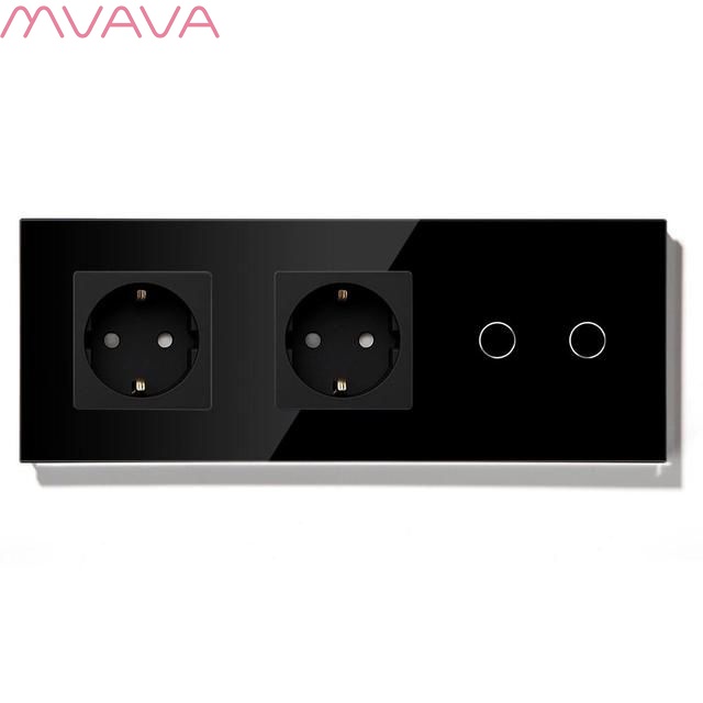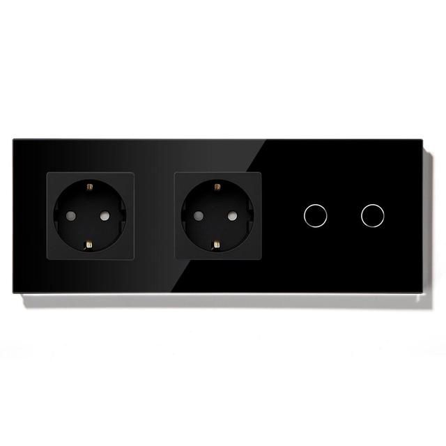 Сенсорный выключатель с розеткой 2 розетки 2кл. 3 поста (2EU+2G) стекло 228х86мм цвет черный