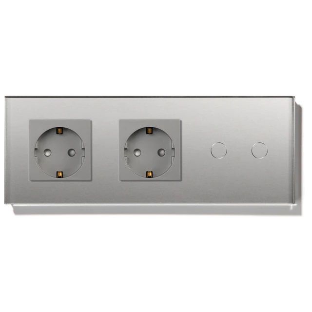 Сенсорный выключатель с розеткой 2 розетки 2кл. 3 поста (2EU+2G) стекло 228х86мм цвет серый
