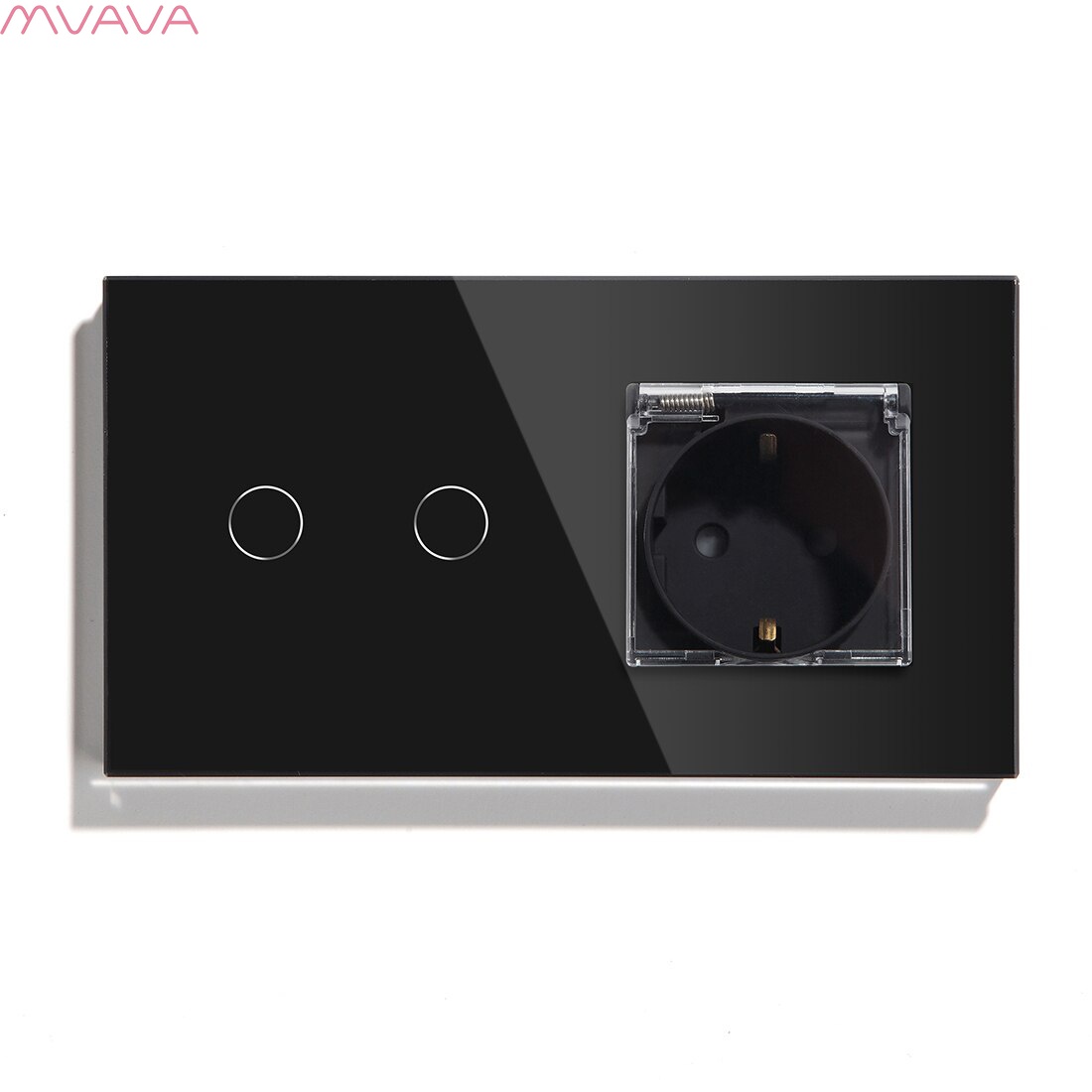 - Сенсорный выключатель с брызгозащитной розеткой евростандарта предназначен для управления двумя линиями освещения и подключение нагрузки до 3500 ватт к розетке . Представляет собой Двух клавишный сенсорный выключатель и розетку объединенные под одной стеклянной панелью. Для включения и выключения света вместо нажатия на механическую клавишу производится прикосновение к сенсорной зоне выключателя.