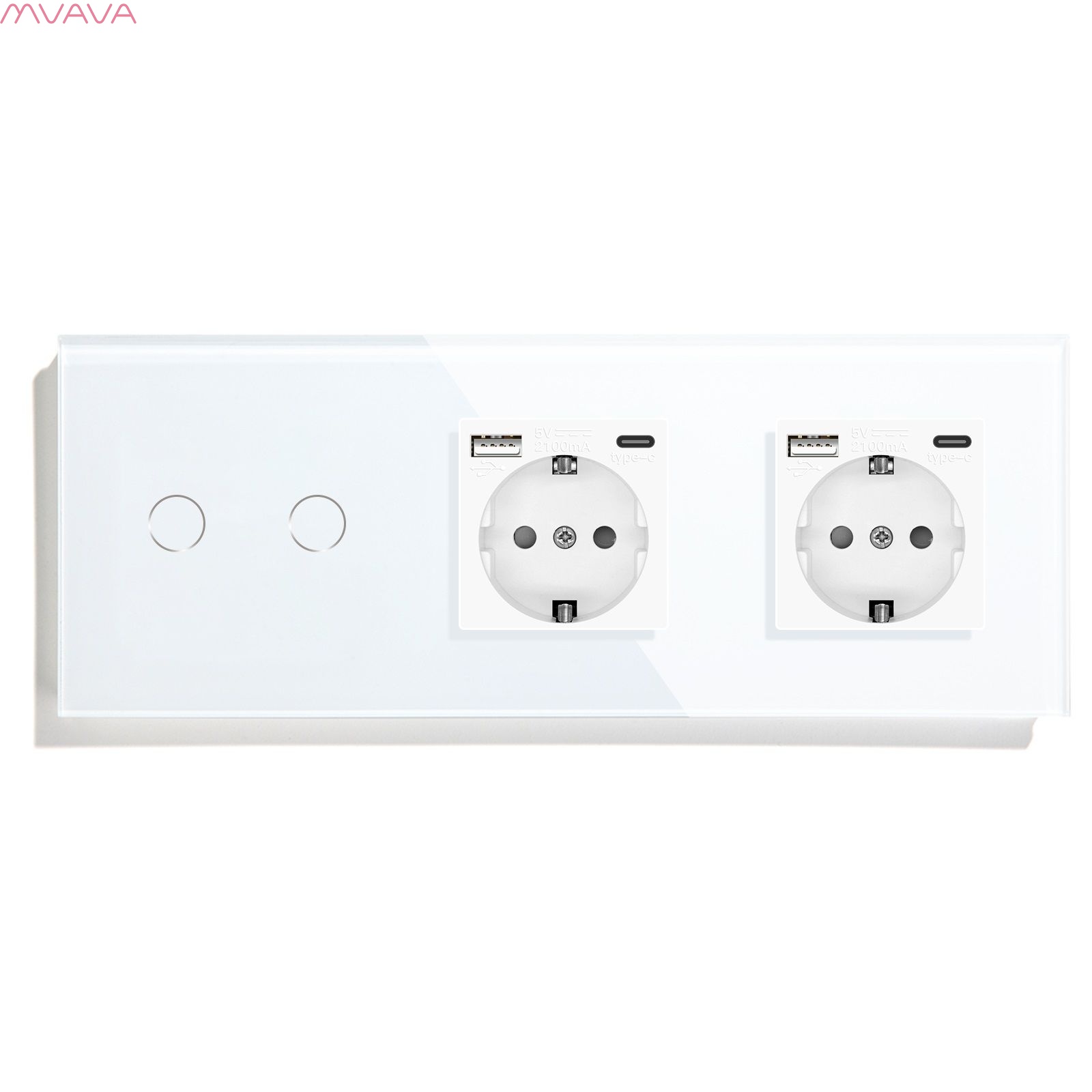 - Сенсорный выключатель с двумя розетками евростандарта предназначен для управления двумя линиями освещения и подключение нагрузки к двум розетке до 3500 ватт на каждую. Представляет собой сенсорный выключатель с двумя USB розетками объединенные под одной стеклянной панелью. Для включения и выключения света вместо нажатия на механическую клавишу производится прикосновение к сенсорной зоне выключателя.