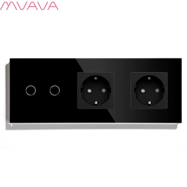 - Сенсорный выключатель с двумя розетками евростандарта предназначен для управления одной линией освещения и подключение нагрузки к двум розетке до 3500 ватт на каждую. Представляет собой сенсорный выключатель с двумя розетками объединенные под одной стеклянной панелью. Для включения и выключения света вместо нажатия на механическую клавишу производится прикосновение к сенсорной зоне выключателя..