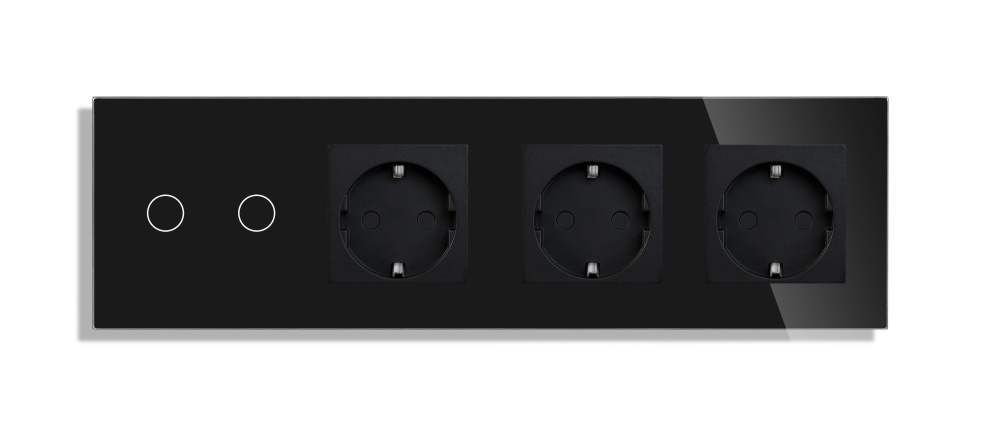Сенсорный выключатель с розеткой 2кл. 3 розетки, 4 поста (2G+3EU) стекло299х86мм цвет черный