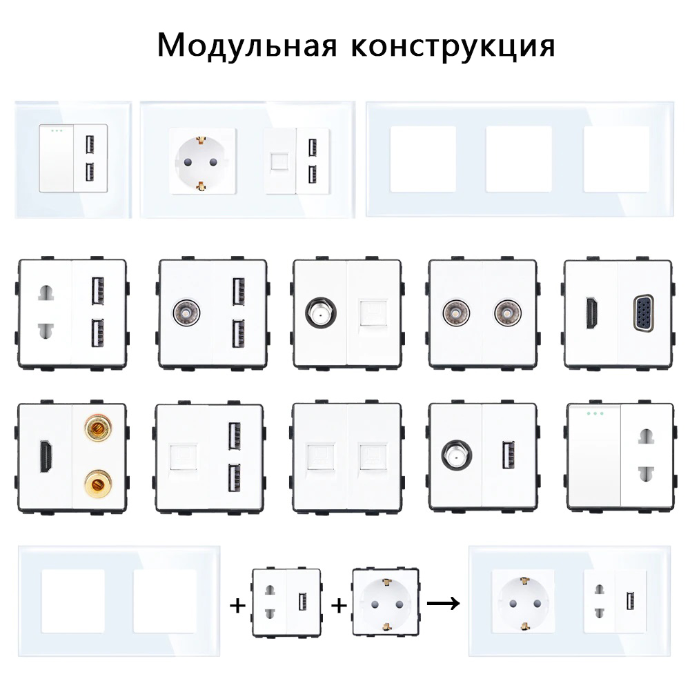 - Выключатель сенсорный, комбинированный с розетками, бесшумный, с подсветкой, мотаж в 4 стандартных круглых подрозетника. Отличается наличием быстрого, чувствительного сенсора (работает с сырыми рукам), работает без нуля и без конденсатора, суппорт крепления из толстого металла, не "навязчивая" подсветка сенсорной зоны, нагрузка на клавишу 300-500Вт минимальная нагрузка 3Вт. Выключатель (не проходной), предназначен для управления световыми приборами, для включения и выключения производится прикосновение к сенсорной зоне выключателя. В нашей коллекции 4 цветовых решения, выключатели и комбинации до 5ти постов с единой панелью, проходные ,Wi FI и ZigBee выключатели