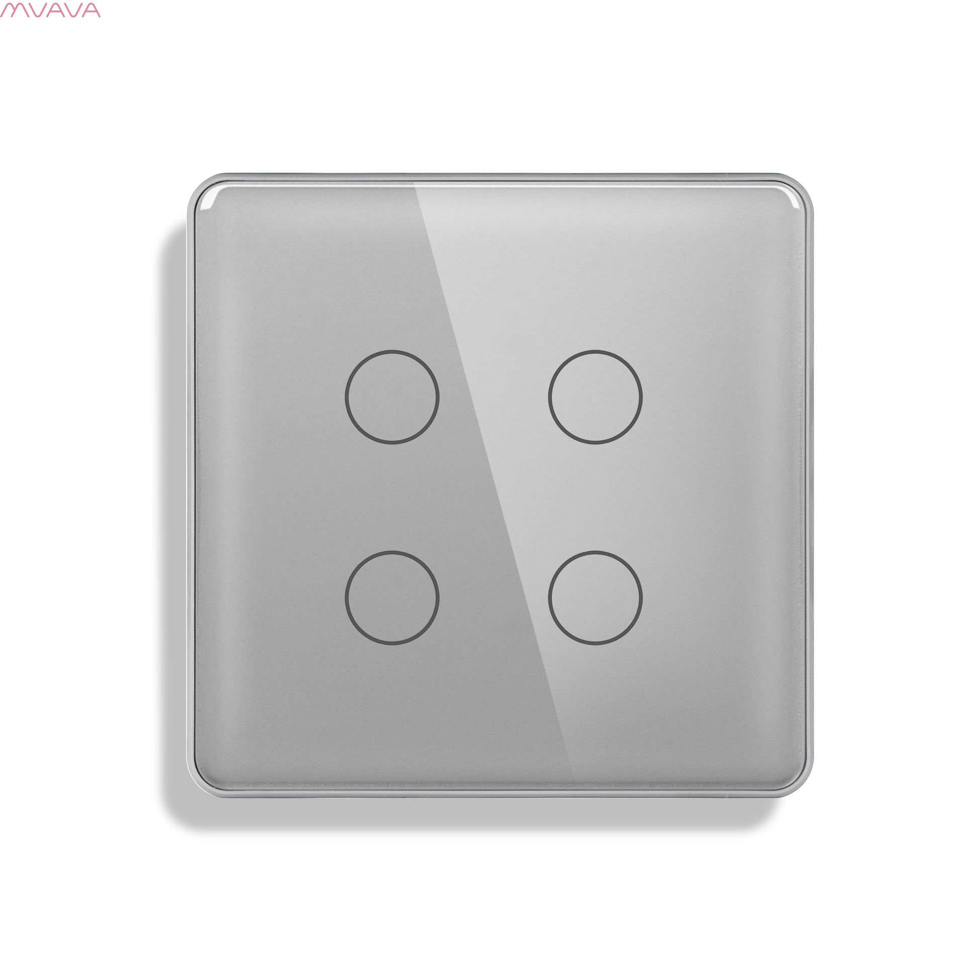 Cенсорный Wi-Fi выключатель с Алисой, 4 клавиши 1 пост, (4G) стекло 2.5D 86х86мм цвет серый