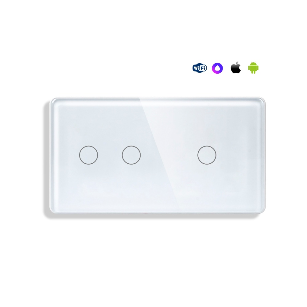Сенсорный выключатель WiFi 3 клавиши 2 поста (2G+1G) стекло 2.5D 157х86мм цвет белый