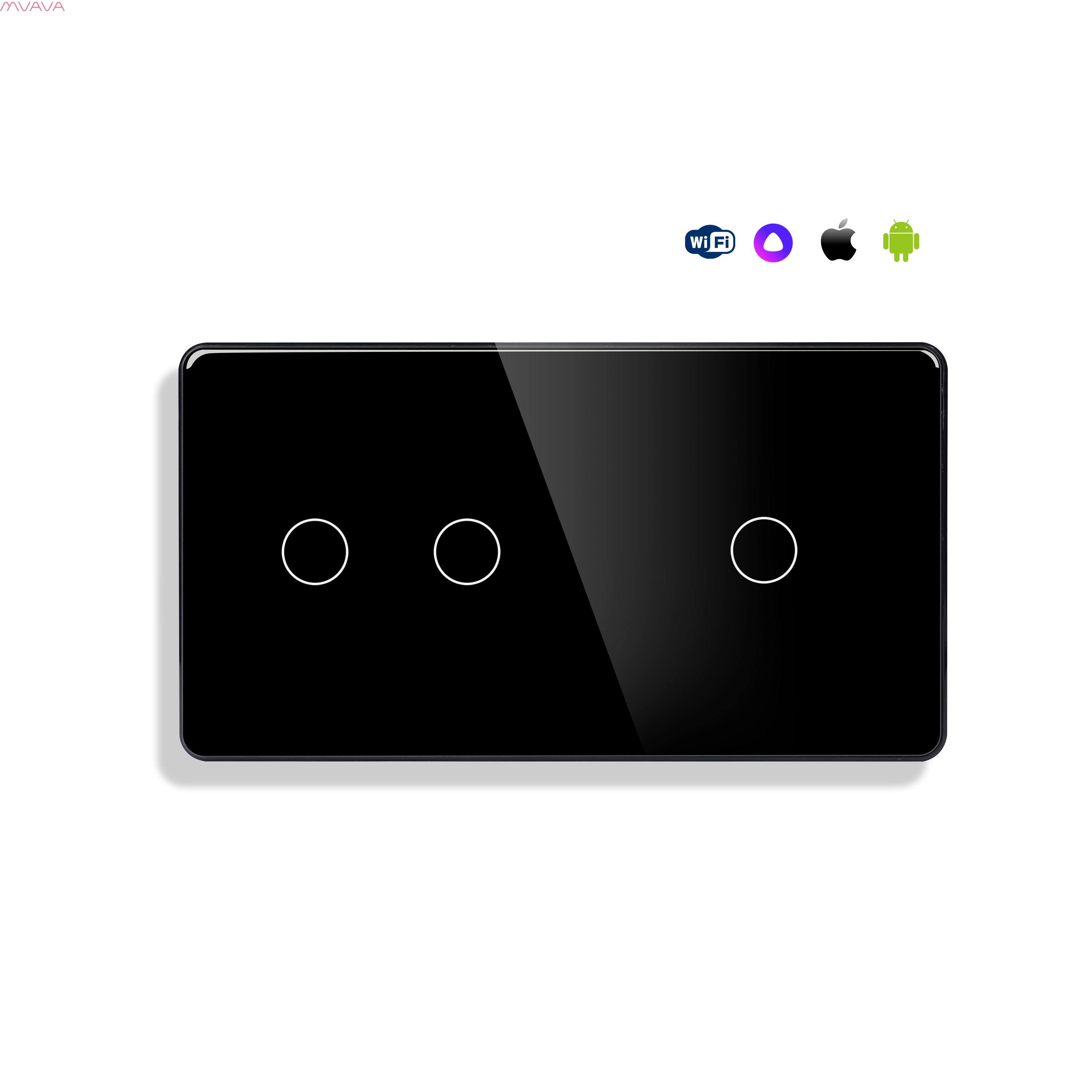 Сенсорный выключатель WiFi 3 клавиши 2 поста (2G+1G) стекло 2.5D 157х86мм цвет черный